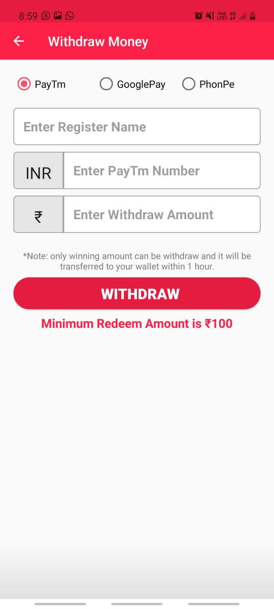 You can withdraw your prize money at any time in your chosen option like PayTM, UPI, etc.
