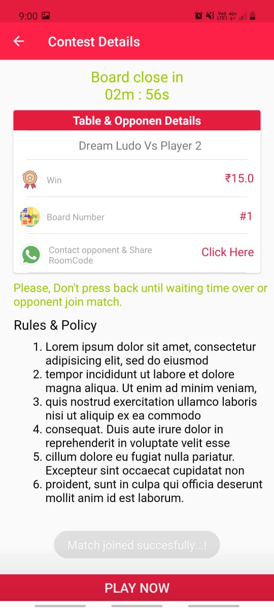 If you need any help regard our app contact us on help@dreamludo.in or Whatsapp us on +91 xxxx xxxxxx.